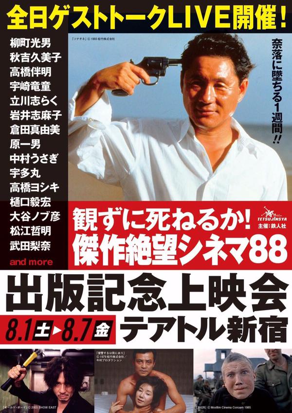 8月1日(土)〜8月7日(金)テアトル新宿にて『観ずに死ねるか!傑作絶望シネマ88』の出版を記念して上映会が開催されます。
